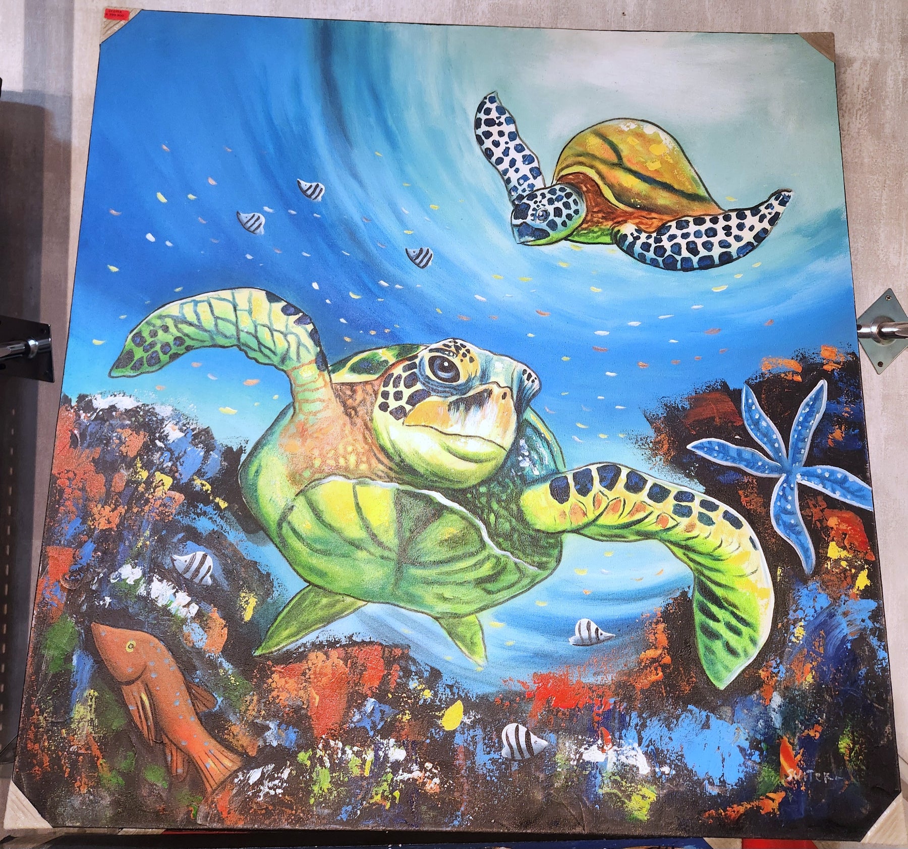 CUADRO OLEO TORTUGAS 100X100CM