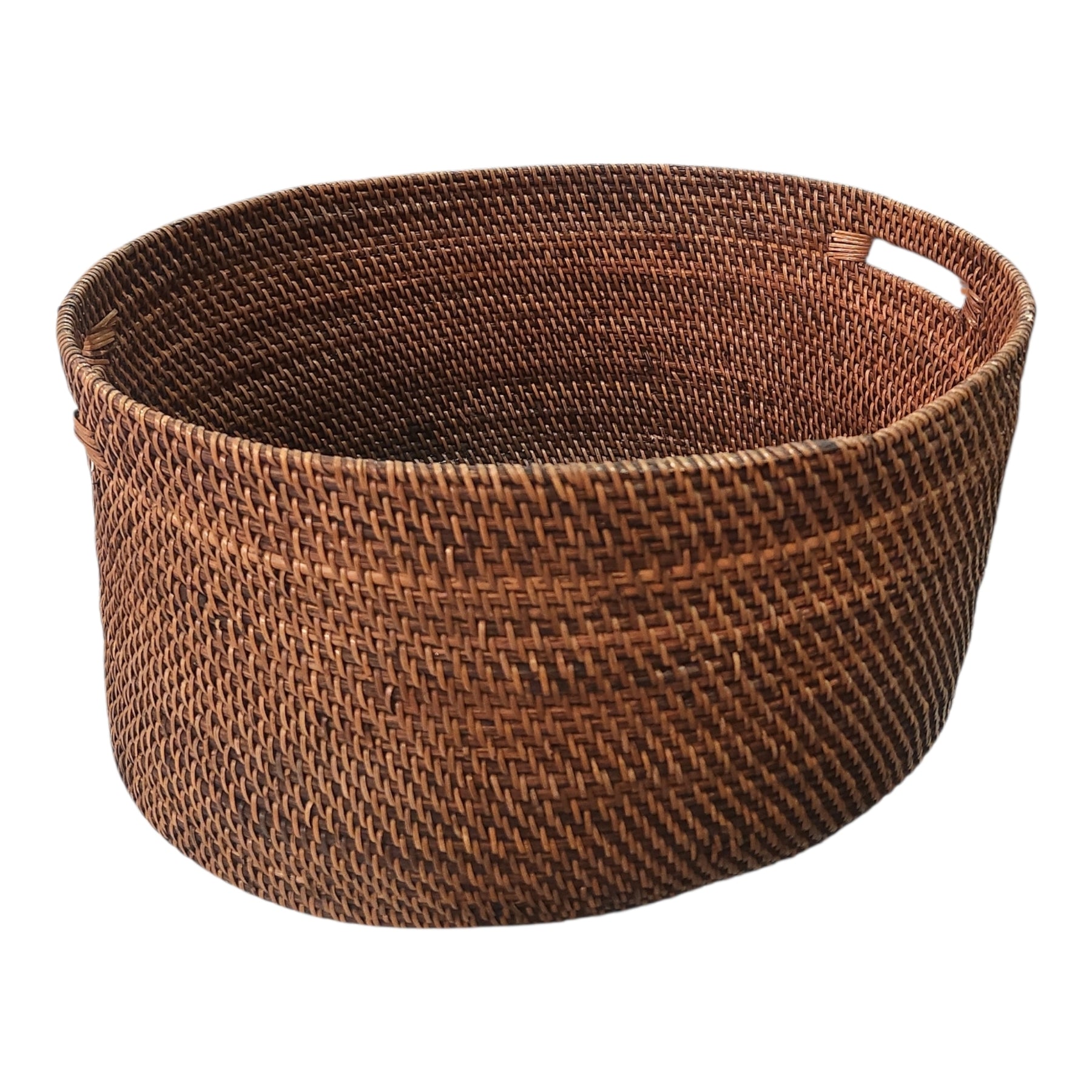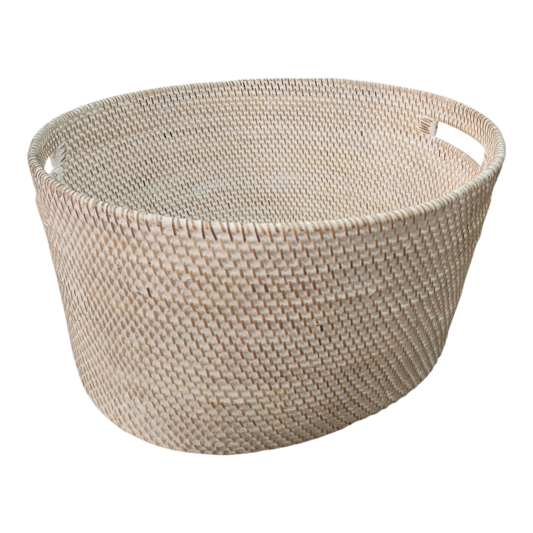 Cesta de almacenamiento ovalada de ratán natural tejido a mano con asas. Este producto se vende por unidad. Producto surtido se envía según disponibilidad.