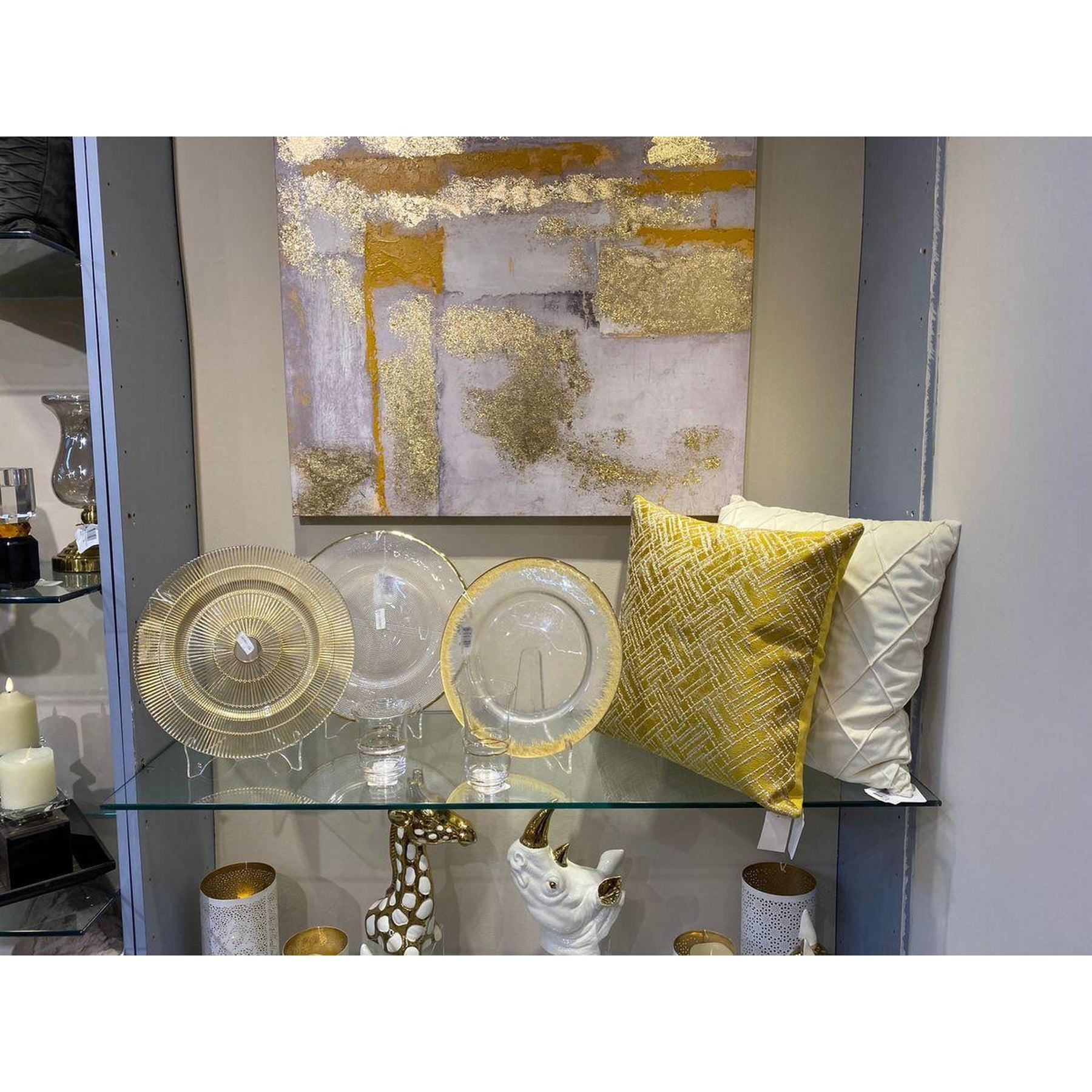 Plato base de vidrio decorativo de color dorado. Composición: 100% VIDRIO.