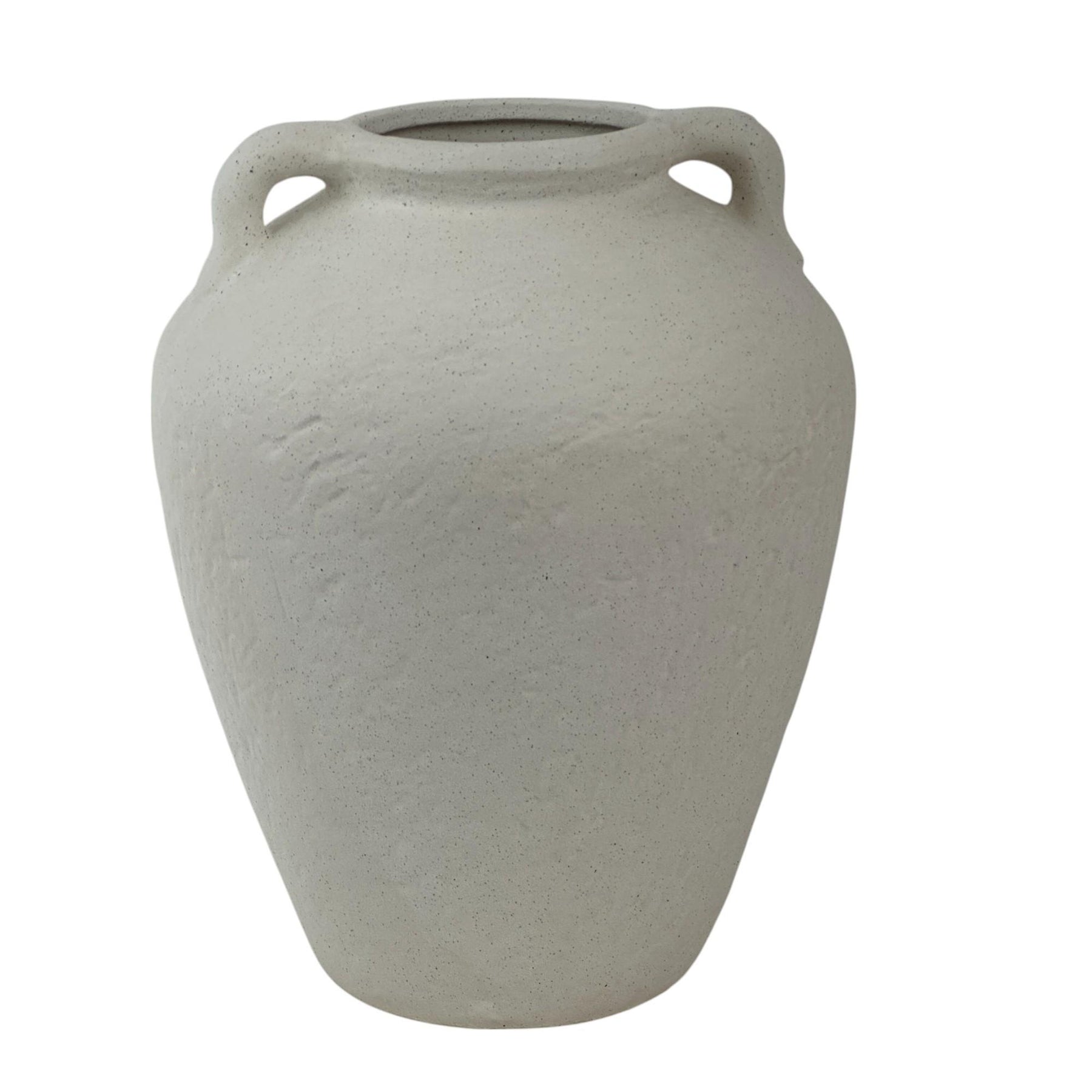 Florero o jarrón decorativo con 2 asas.  Composición: 100% cerámica.