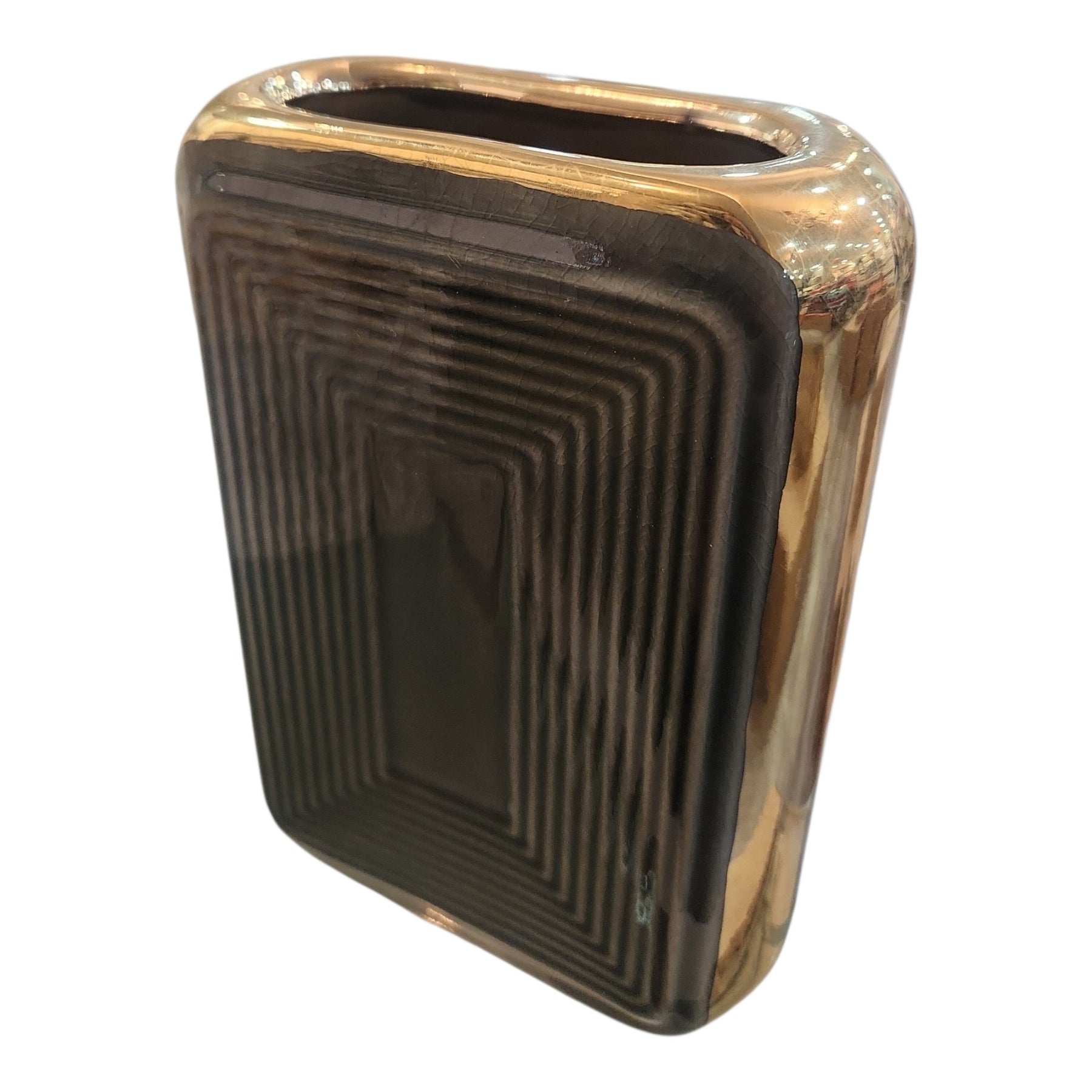 Florero o jarrón de cerámica con diseño vintage de mediados de siglo con un diseño geométrico.